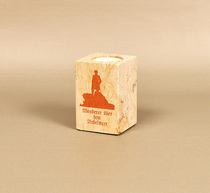 Um die Liebe des Künstlers zur Sächsischen Schweiz zu feiern, haben wir zum 250. Geburtstag Friedrichs ein handgefertigtes Teelicht aus Sandstein angefertigt, welches dem wohl berühmtesten Werk des Malers gewidmet ist: „Wanderer über dem Nebelmeer“. Jedes Stück ist ein Unikat, sorgfältig gefertigt, um die Schönheit und Eleganz des Sandsteins zu betonen.
