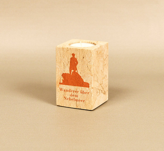 Um die Liebe des Künstlers zur Sächsischen Schweiz zu feiern, haben wir zum 250. Geburtstag Friedrichs ein handgefertigtes Teelicht aus Sandstein angefertigt, welches dem wohl berühmtesten Werk des Malers gewidmet ist: „Wanderer über dem Nebelmeer“. Jedes Stück ist ein Unikat, sorgfältig gefertigt, um die Schönheit und Eleganz des Sandsteins zu betonen.