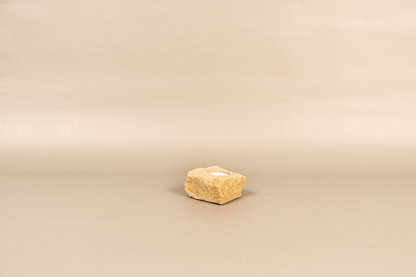 • flache Sandsteinscheibe mit natürlichen Bruchkanten, Bohrung für Teelicht