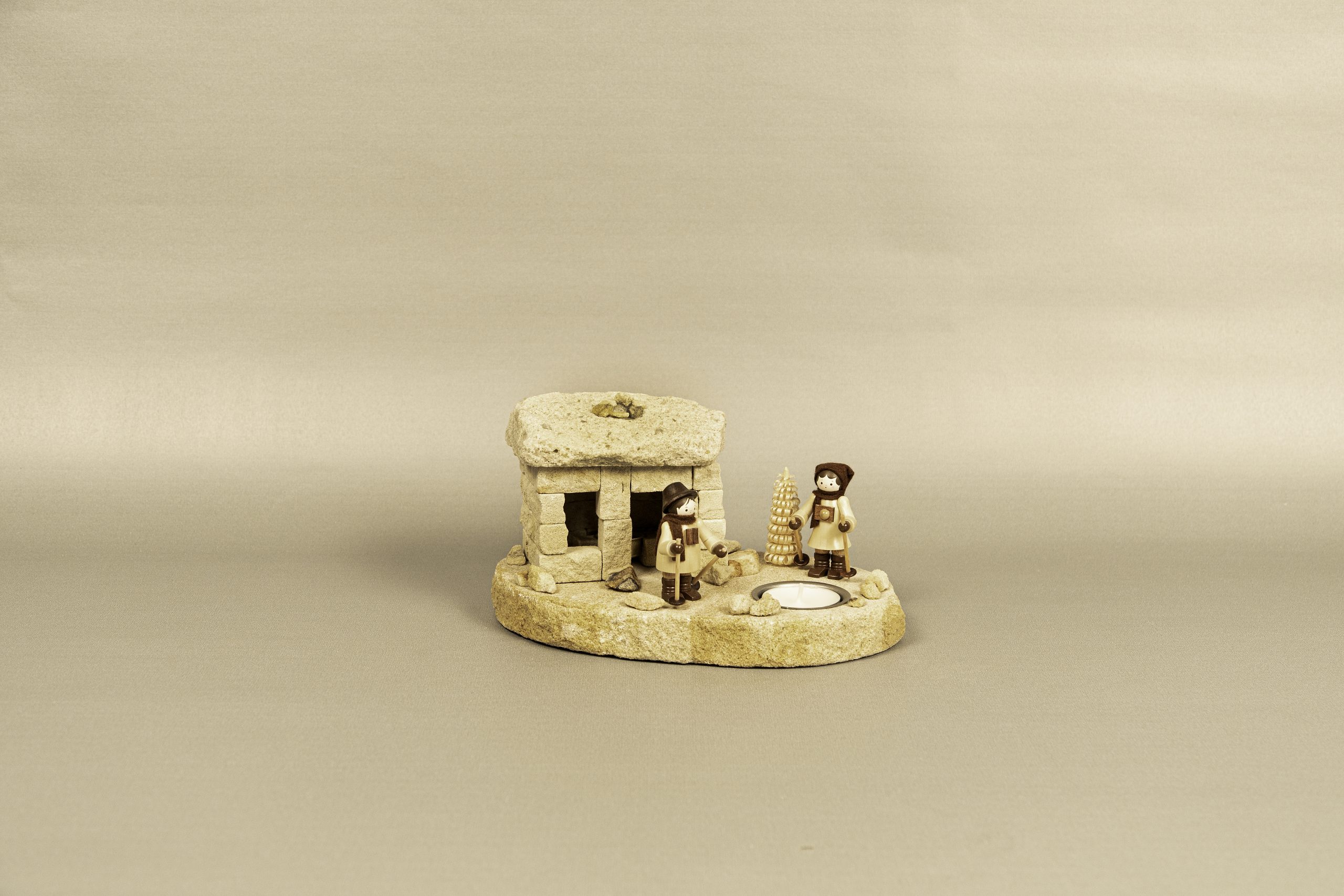 Räucherhaus „Schutzhütte“ der Steinbrecher in Steinbrüchen des Elbsandsteingebirges, Figuren aus Holz (Romy Thiel)